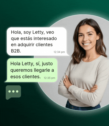 Letty trabaja como empleada de tu equipo para detectar, contactar y calentar a decisores de empresas calificadas, organizaciones y gobiernos para conseguirte más llamadas de ventas B2B.Lo mejor... solo ganamos si tu ganas.